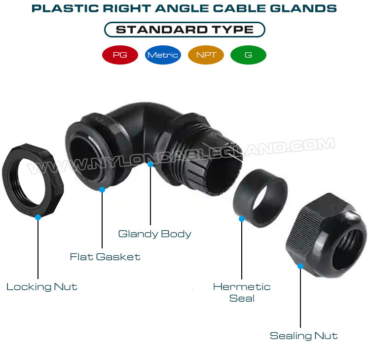 | Nom du produit: | Presse-étoupes hermétiques coudés à 90°, raccords presse-étoupes angle droit étanches IP68 avec filetage PG et métrique |