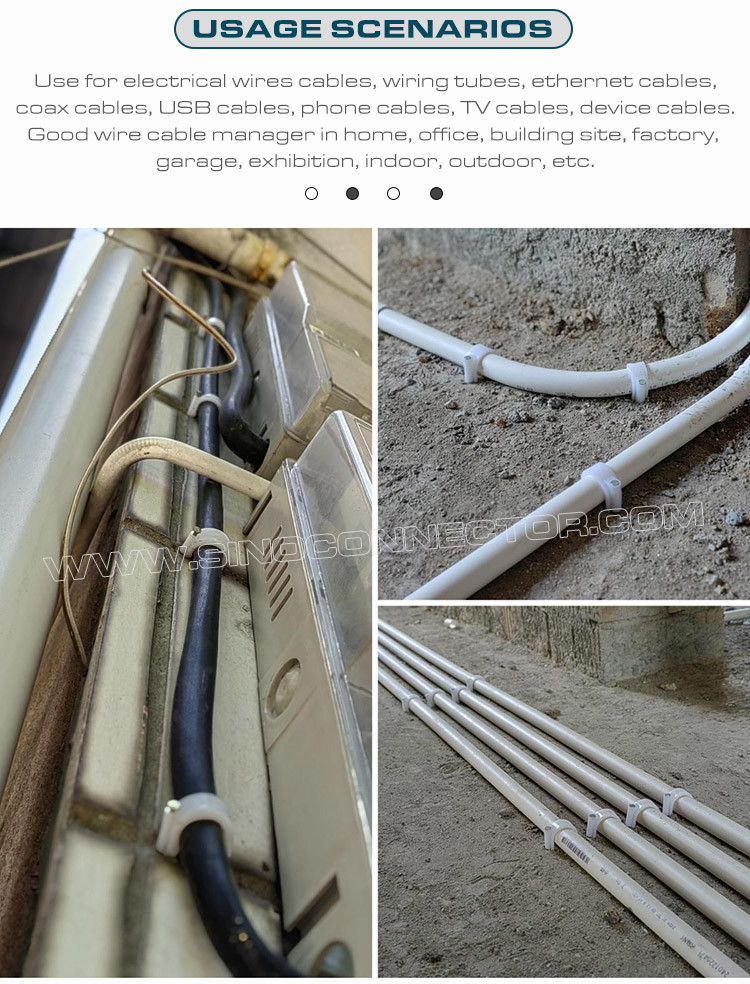 Ces supports de câbles ou organisateurs de câbles sont parfaits pour les câbles coaxiaux RG8X, RG58, RG59 ou LMR 240, les câbles coaxiaux vidéo ou audio numériques RG6, les câbles réseau Ethernet Cat 5, Cat 6, les câbles de haut-parleur, les câbles téléphoniques, les câbles USB, les lumières de Noël, etc. Rendez votre maison plus ordonnée et libérez beaucoup d'espace. Le rangement des câbles peut également améliorer la sécurité de l'utilisation de l'électricité et protéger la sécurité des membres de la famille, en particulier des enfants.