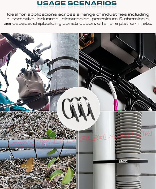 | Usage: | Sécuriser et organiser les câbles, fils, tuyaux, plantes, etc. | Application: | Largement utilisé pour une variété d'environnements difficiles |