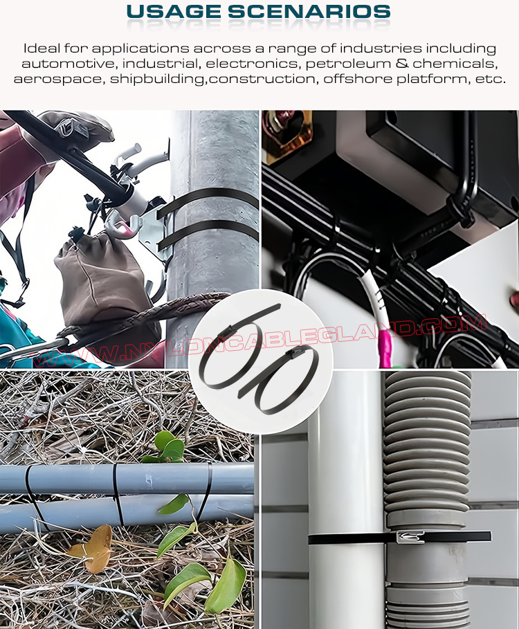► Polyvalent - ils sont parfaits pour ranger la maison, le jardin, le bureau et le garage, non seulement parfaits pour l'organisation et la liaison des câbles ou des fils, mais aussi excellents pour l'automobile, les communications, les services publics, l'aérospatiale, l'industrie, la construction, la marine, les panneaux, les signaux, les installations nucléaires et solaires, et bien d'autres.